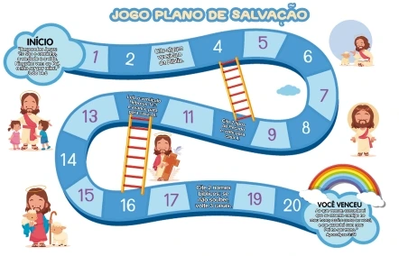 Jogo Plano da Salvação — Uma atividade divertida e educativa que ensina, de forma simples e clara, o caminho da salvação segundo a Bíblia, ideal para crianças!
