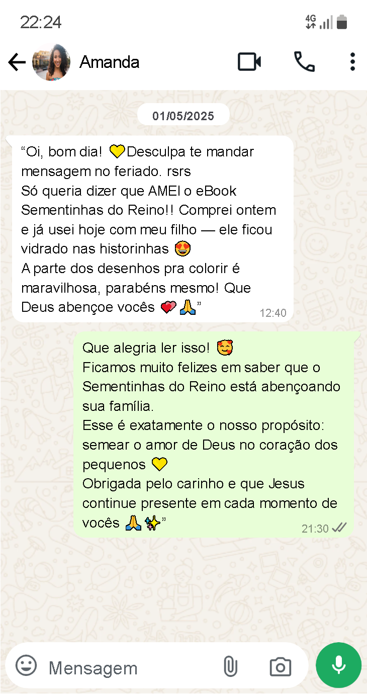 Mais de 5.000 famílias já usam este kit para ensinar seus filhos a amar a Deus com criatividade, leveza e profundidade espiritual.